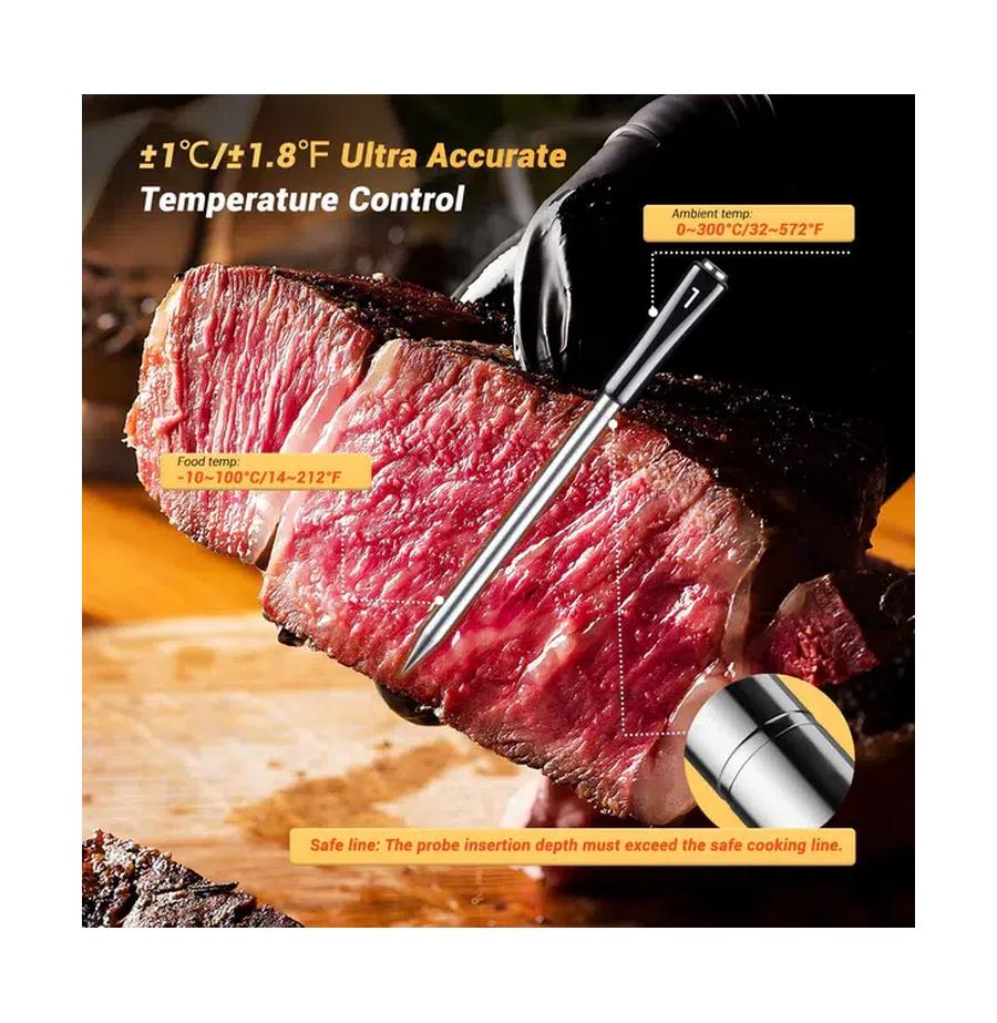 • אפליקציית Inkbird החכמה כוללת פרופילים מוגדרים מראש לבשרים שונים, הגדרות טמפרטורה, גרפים בזמן אמת והתראות.