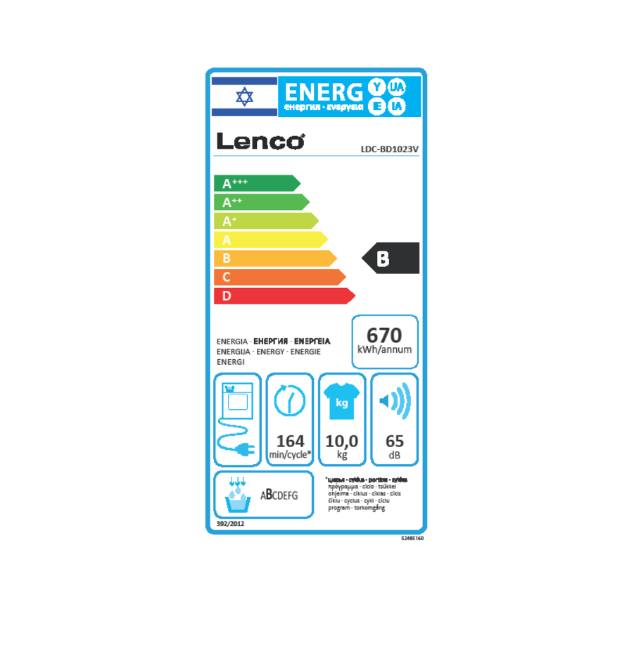 מייבש כביסה 10 ק"ג עם מעבה עוצמת ייבוש 2700 וואט Lenco לנקו