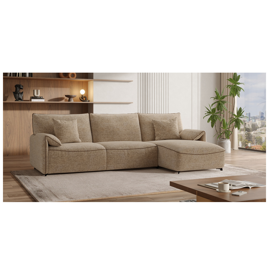השזלונג מוסיף נוחות ואלגנטיות, מושלם למנוחה, קריאה או צפייה. ניתן למקמו בצד ימין או שמאל לפי הצורך, והוא משתלב בעיצוב הספה למראה יוקרתי והרמוני
