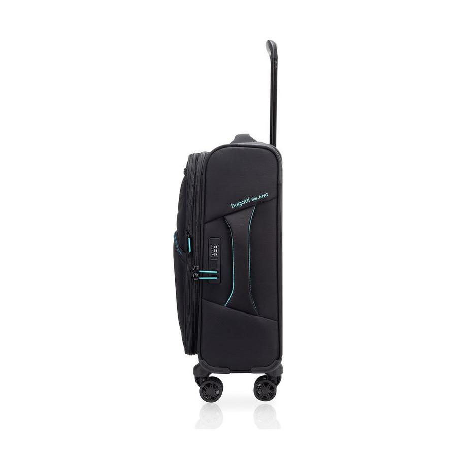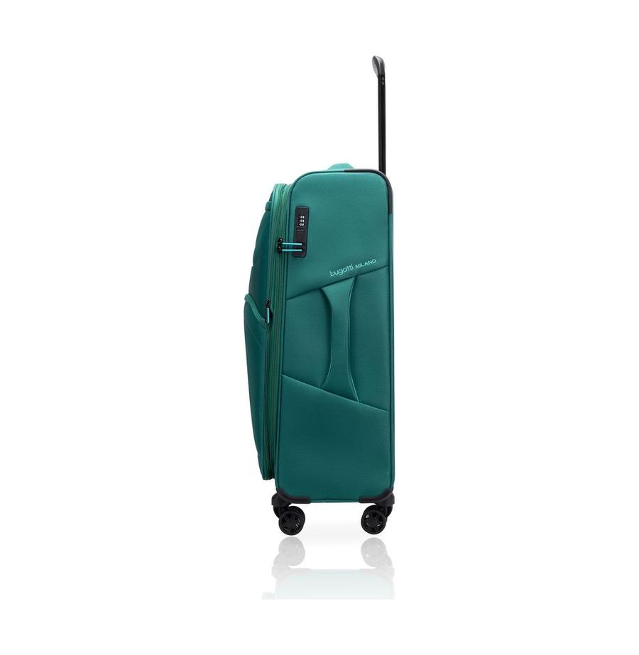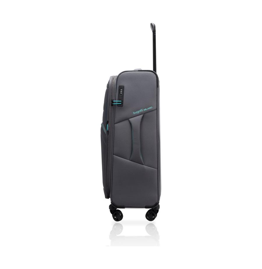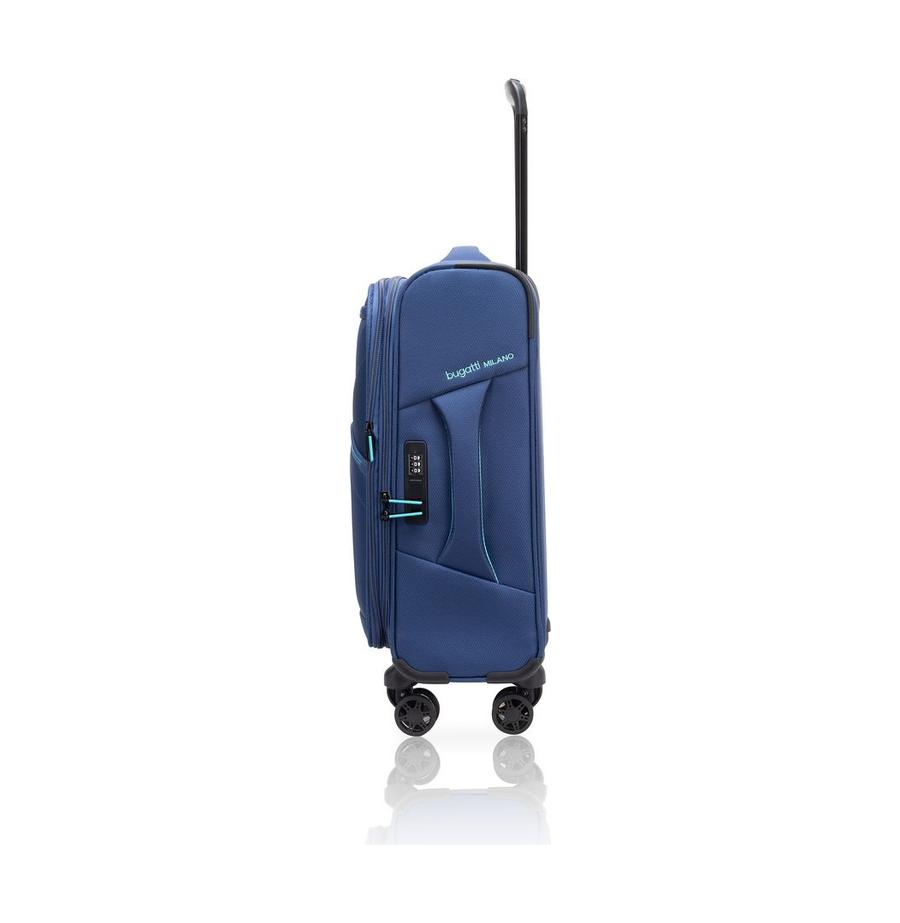 מזוודה רכה וקלה מתוצרת Bugatti Milano שעברה בדיקת איכות קפדנית. המזוודה מיוצרת מחומר פוליאסטר עם ציפוי PVC מאחור. כוללת ידית טלסקופית איכותית, שתי ידיות נשיאה בנוסף לידית הטלסקופית, ידית עליונה וידית צידית עם הגנות פנימיות למניעת נזק לידיות. רוכסן איכותי + רוכסן הרחבה להגדלת נפח המזוודה – למזוודה הקטנה הבינונית והגדולה. המזוודה מגיעה במגוון צבעים אופנתיים המקלים על הזיהוי במסוע.