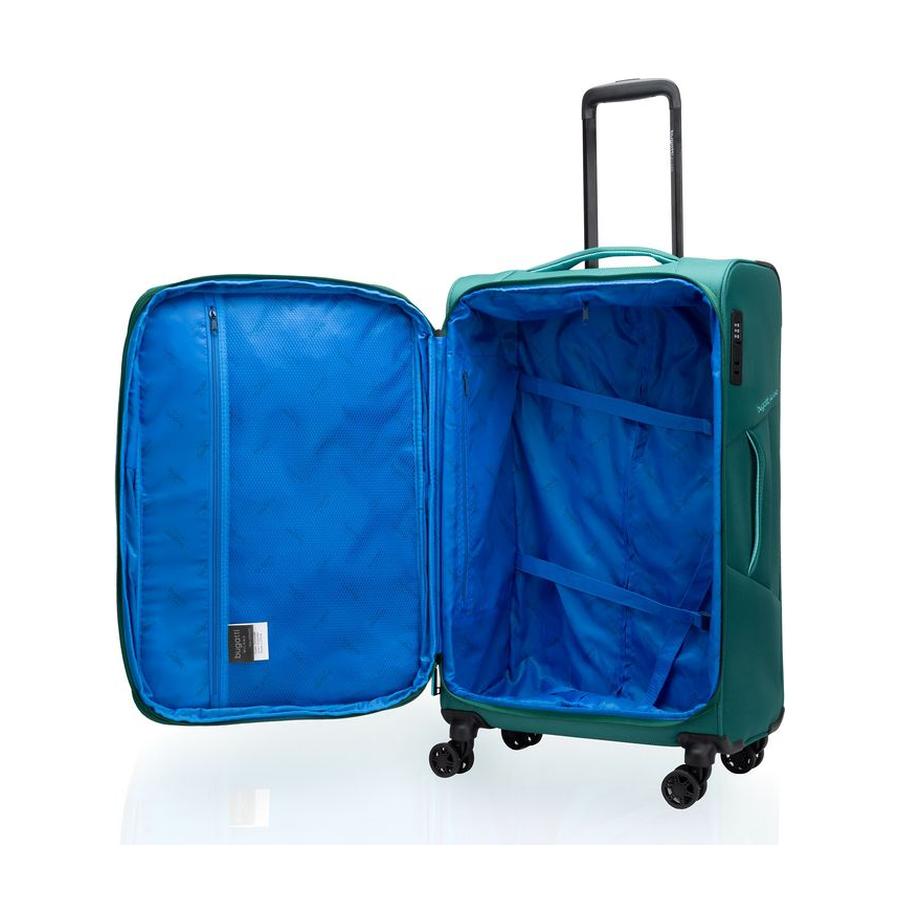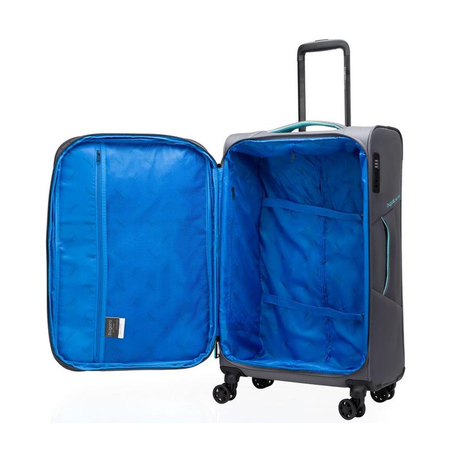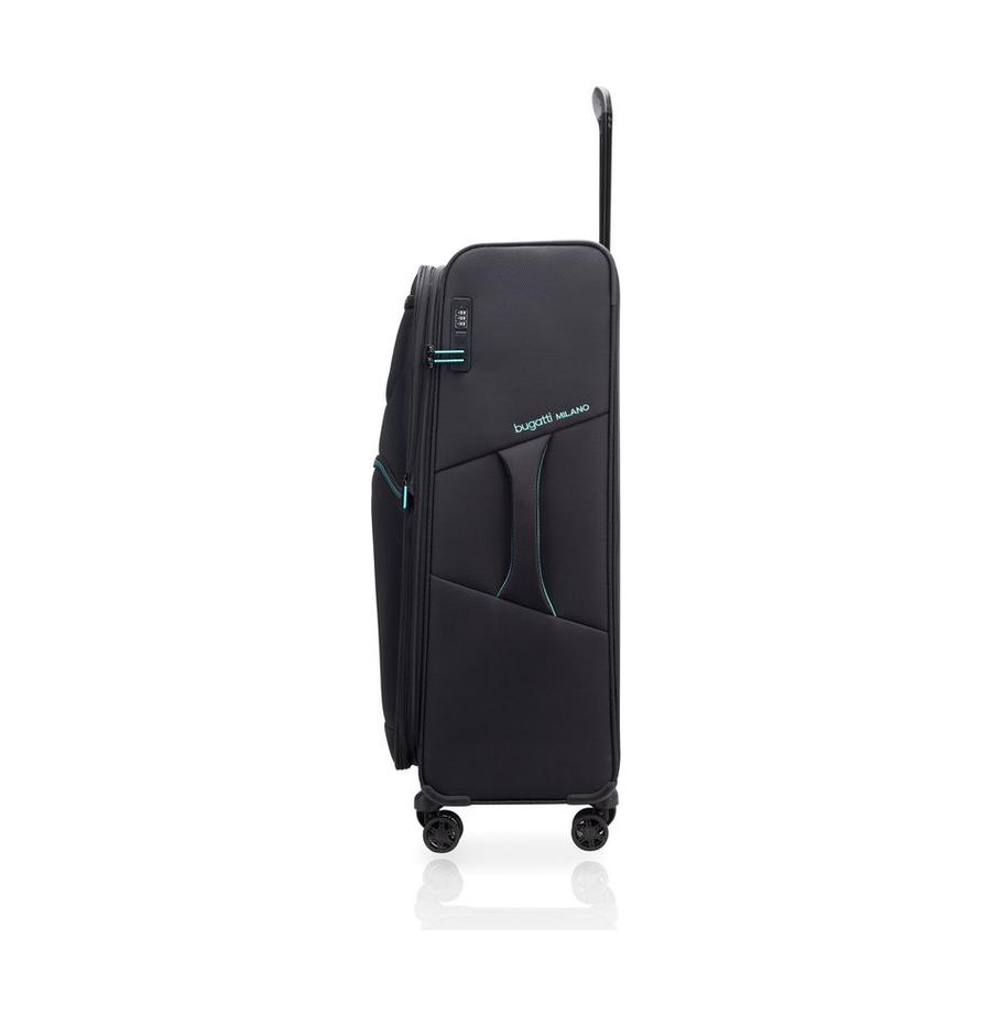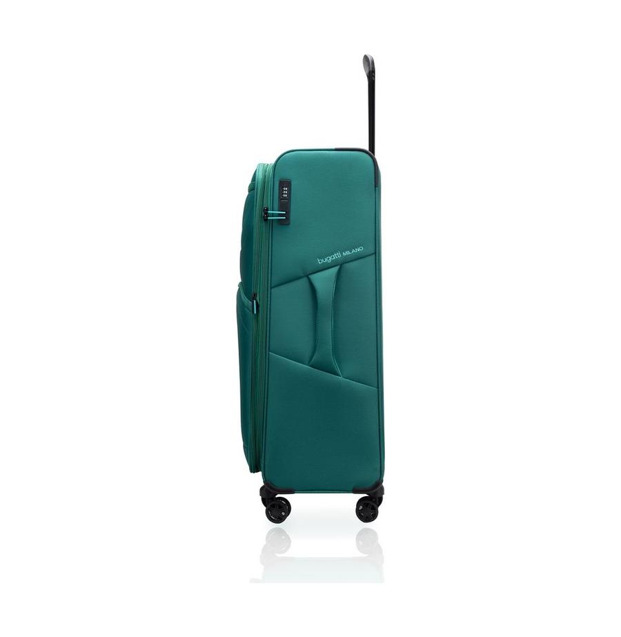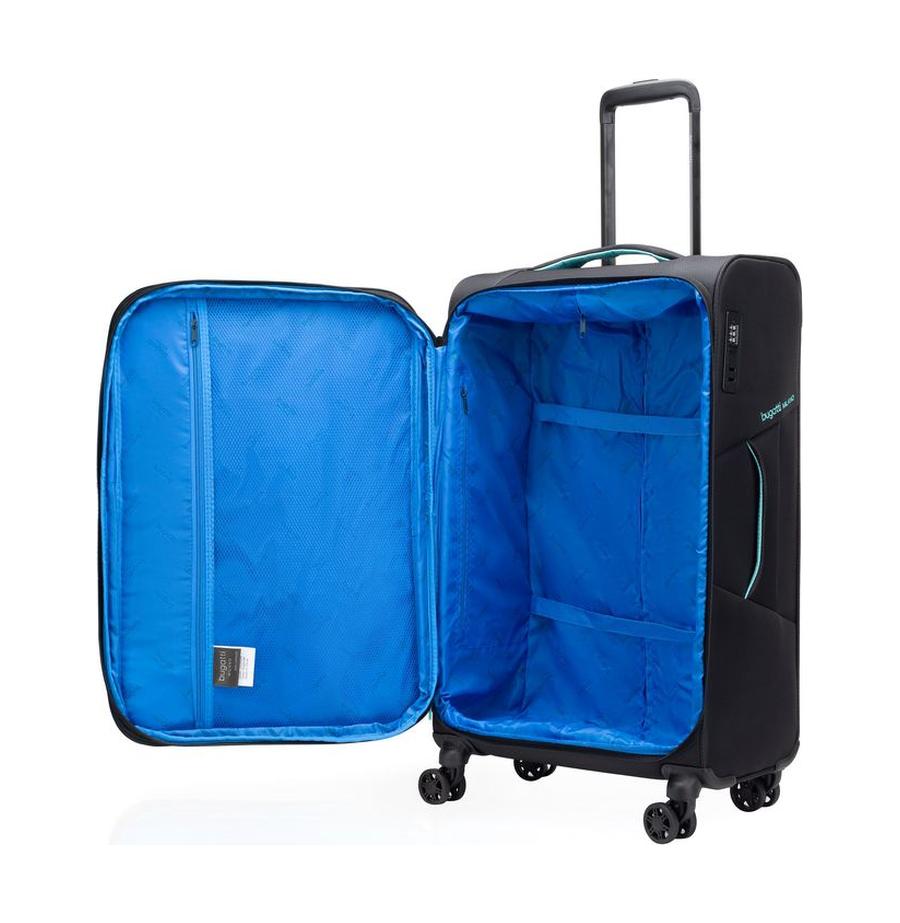 מזוודה רכה וקלה מתוצרת Bugatti Milano שעברה בדיקת איכות קפדנית. המזוודה מיוצרת מחומר פוליאסטר עם ציפוי PVC מאחור. כוללת ידית טלסקופית איכותית, שתי ידיות נשיאה בנוסף לידית הטלסקופית, ידית עליונה וידית צידית עם הגנות פנימיות למניעת נזק לידיות. רוכסן איכותי + רוכסן הרחבה להגדלת נפח המזוודה – למזוודה הקטנה הבינונית והגדולה. המזוודה מגיעה במגוון צבעים אופנתיים המקלים על הזיהוי במסוע.