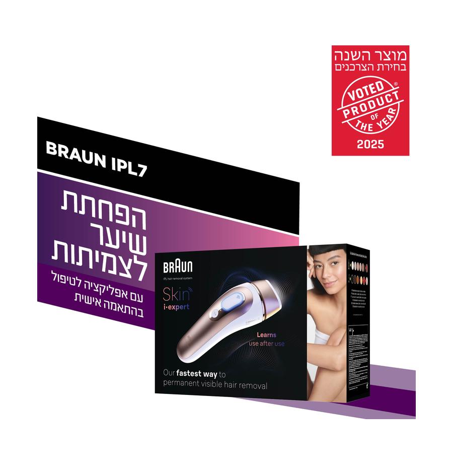 מותג בראון גאה להשיק את מכשיר ה-IPL החכם הראשון בעולם – Braun Skin-i expert pro7, המאפשר הפחתת שיער קבועה עם תוצאות נראות לעין תוך 4 שבועות בלבד, והפחתת שיער קבועה תוך 12 שבועות בלבד.