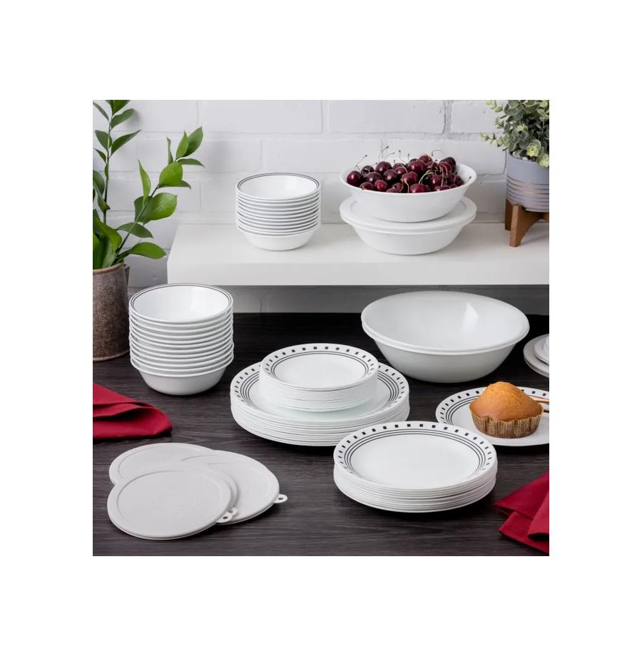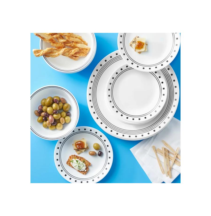 סט צלחות 18 חלקים ל6 סועדים קורל דגם City block תוצרת קורנינג ארה"ב – הצלחות החזקות בעולם !
